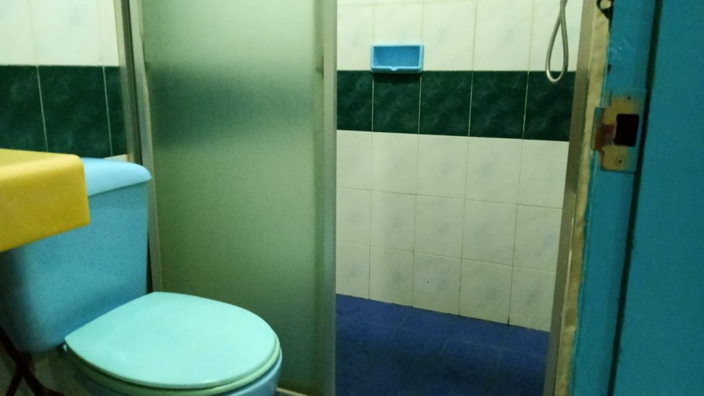Saya sempat memeriksa fasilitas kamar sebelum merebahkan diri. Pertama kali saya memeriksa kamar mandi. Ada cermin, wastafel dan shower. Perabotnya terlihat lama, namun yang penting bersih dan masih berfungsi. Mau mandi air panas pun tersedia, meskipun pertama kali saya setel airnya gak langsung hangat.